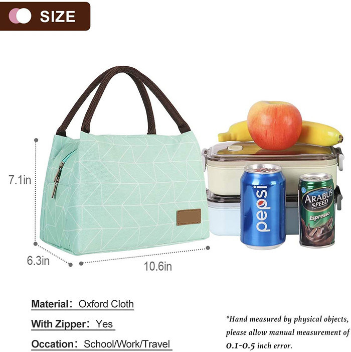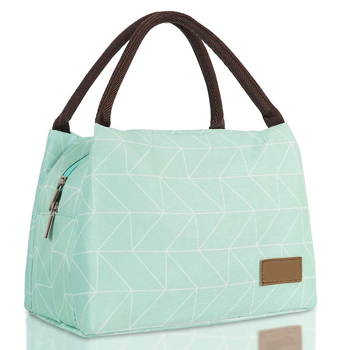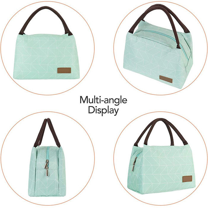 하이 라이트: | 기하학 녹색 재사용 가능한 도시락 가방,지퍼 재사용 가능한 도시락 가방,쿨러 현대 피크닉 도시락 가방 |