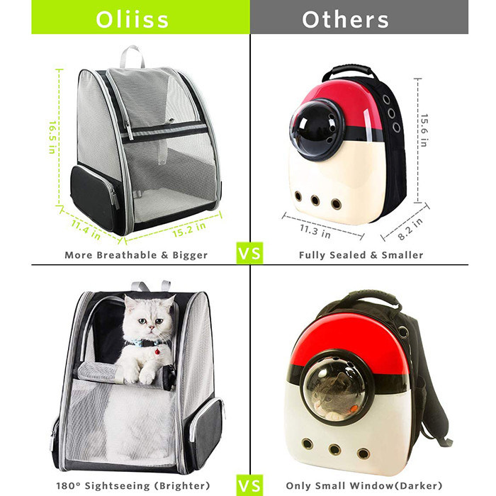 ★ 애완 동물 배낭 크기:13" L x 11.42" W x 16.73" H. 최대 15파운드의 개 또는 최대 18파운드의 고양이에게 적합합니다. 고양이, 소형 개 및 기타 대부분의 중소형 애완동물에 쉽게 맞습니다. 구매하기 전에 애완 동물을 측정하십시오 - LENGTH: 목에서 꼬리까지; HEIGHT: 바닥에서 어깨까지.